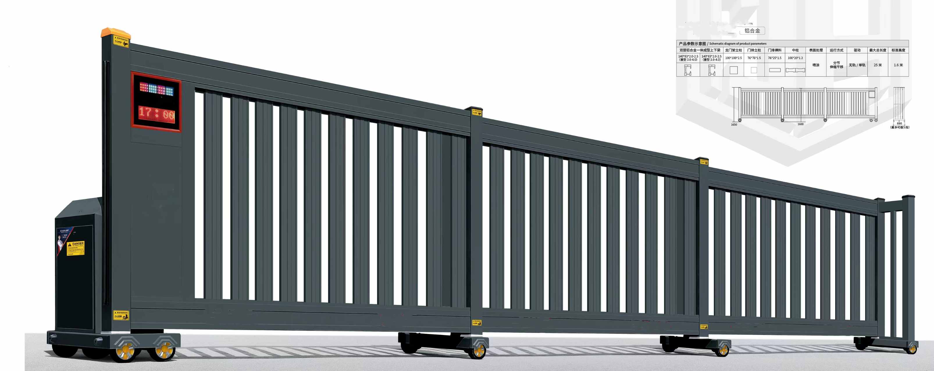 1.4輪驅動:運行快捷、平穩、不打滑、牽引力達300N。 2.專用耐磨輪:直徑120mm加大橡膠耐磨輪選用進口PVC材料制作,在30米行程里通過次來回測試,行走輪無明顯磨損可用3-5年時間,由于輪子直徑大,風雨后不影響電動門的正常運行。 …